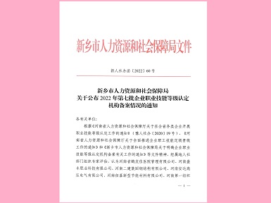 开云手机入口顺利通过新乡市企业职业技能等级认定机构备案