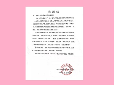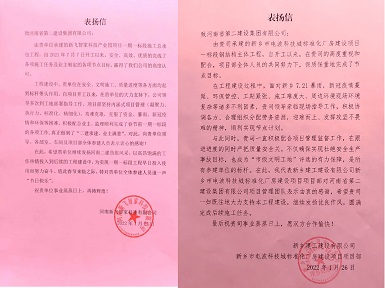 新乡建工建设有限公司和河南新飞智家科技有限公司向开云手机入口发来表扬信