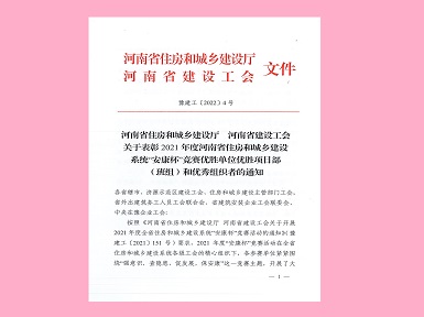 开云手机入口焊工班组荣获“2021年度河南省住房和城乡建设系统‘安康杯’竞赛优胜班组”称号