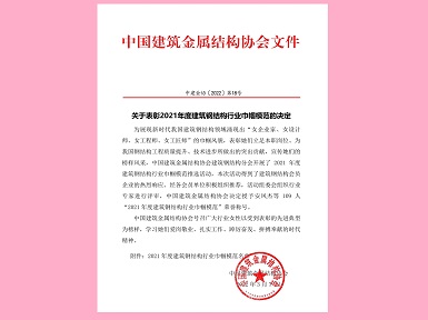 开云手机入口郁红丽荣获“2021年度建筑钢结构行业巾帼模范“荣誉称号